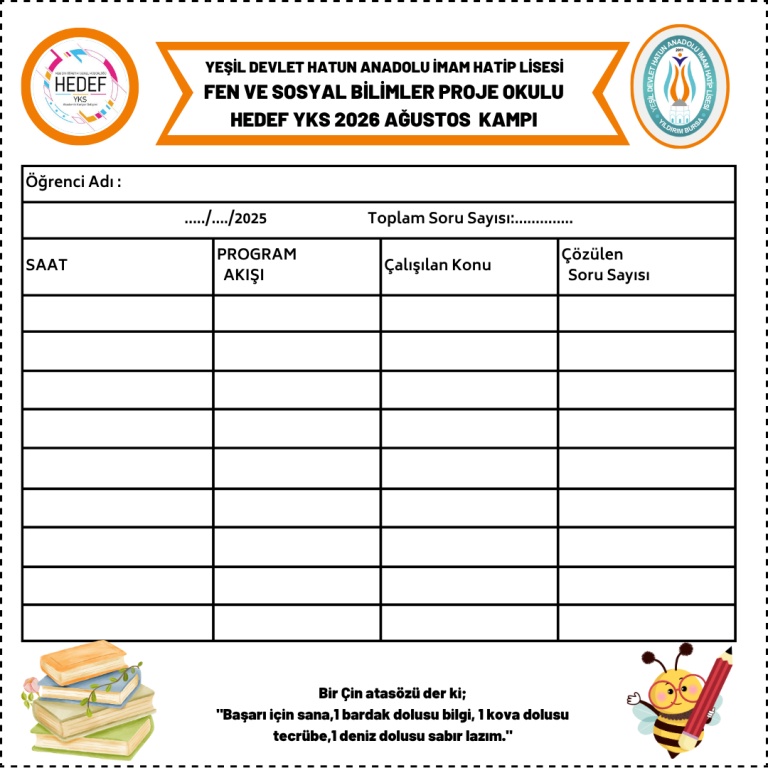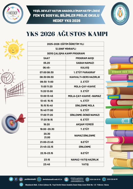 2025 -2026 EĞİTİM ÖĞRETİM YILI HEDEF 2026 YKS AĞUSTOS KAMP ÇALIŞMASI